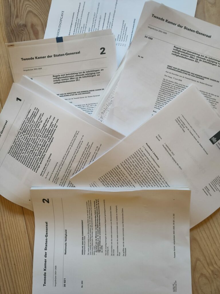 Maar ja, na de eerste honderden pagina’s lezen van de agenda slinkt mijn stapel niet, integendeel er komt alleen meer bij. Want wat is gezegd in eerder commissievergaderingen? Natuurlijk wil ik dat ook weten. Hoe heeft de wetgeving rondom de AIVD en MIVD zich ontwikkeld? Wat zijn de plannen voor nog een nieuwe wet? En hoe zit het nu met al die tijdelijke regelingen, wetten en voorzieningen? Ik merk dat ik soms wegdroom en dat zelfs ik bijna terugverlang naar vroeger (!), toen de geheime diensten gewoon geheim waren en de basis van hun werk ook alleen in een geheim Konink Besluit was geregeld.